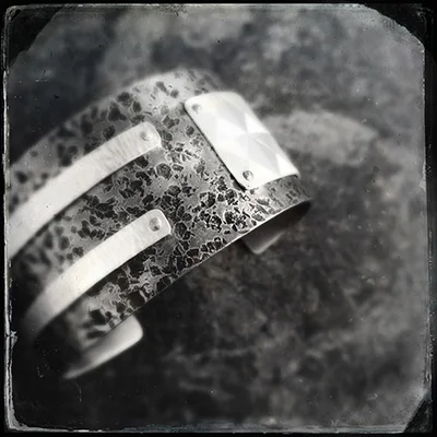 Hi Suzy, I received my rings today and I am so very happy with them. Thank you so much for doing a special order and creating such a lovely keepsake for me. I think what I love best about them is that they are delicate but not ultra feminine. The dark texture breaks up the shine and they fit very nicely. Thank you again and I'll be sure to spread word of your talent around town! SH, Alaska - 9/2016